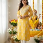 Averi, a breathable Modal straight kurti adorned with intricate handcrafted chikankari work. Designed for effortless elegance in summer, Averi combines traditional artistry with contemporary style, offering comfort and sophistication for every occasion.