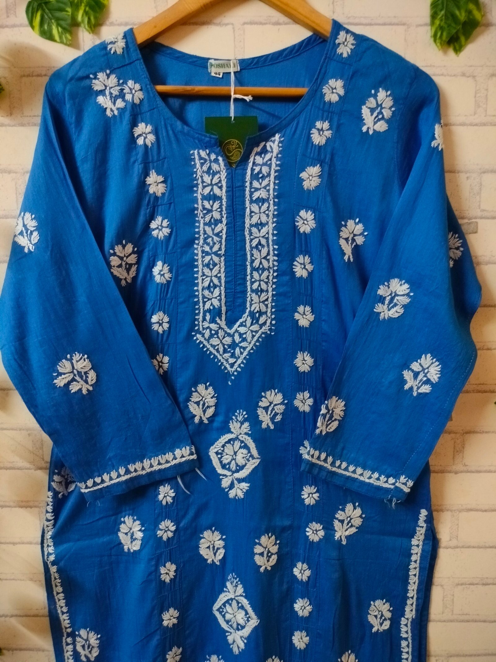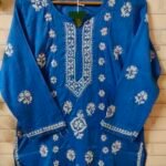 A cotton Chikankari Kurti panel design features intricate hand-embroidered patterns typically crafted with delicate white thread on a soft, breathable cotton fabric. The design showcases traditional floral motifs, paisleys, or geometric patterns, often arranged symmetrically along the front panel of the Kurti. The light and airy texture of the cotton enhances the grace of the chikankari, making it a perfect blend of elegance and comfort, ideal for casual or festive wear.