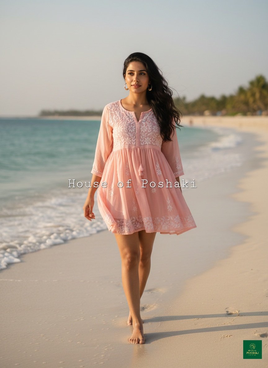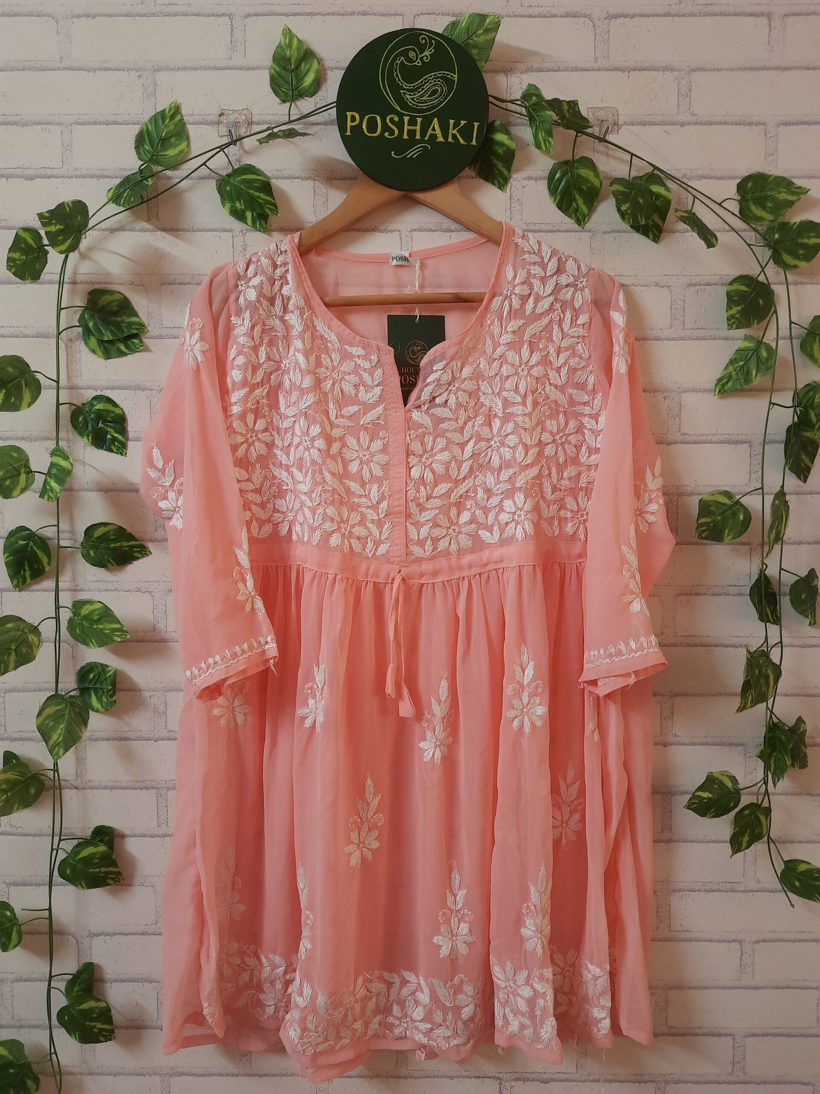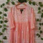 A Georgette peplum top, perfect for everyday wear, is available in seven vibrant colours. This top features delicate, handcrafted Chikankari embroidery, adding a touch of elegance to its flowy, lightweight fabric. The peplum design accentuates the waist, creating a flattering silhouette that combines comfort with style. Ideal for casual outings or workwear, this versatile piece effortlessly blends traditional craftsmanship with modern fashion.