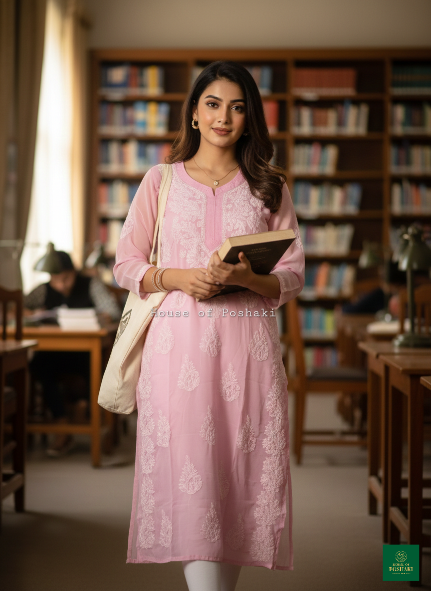 Georgette Straight Kurti – Pink