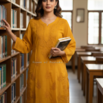 Georgette Tone-to-Tone Kurti – Mustard