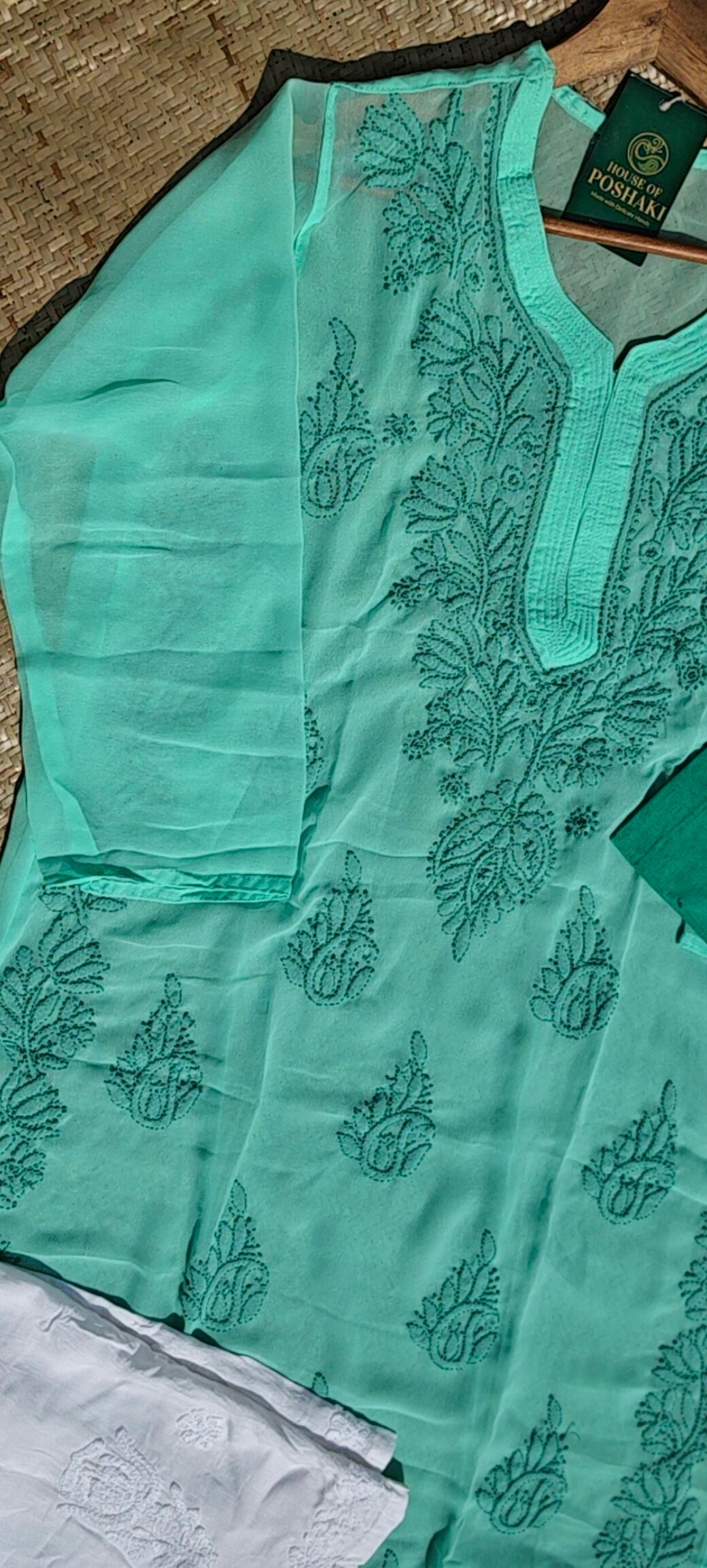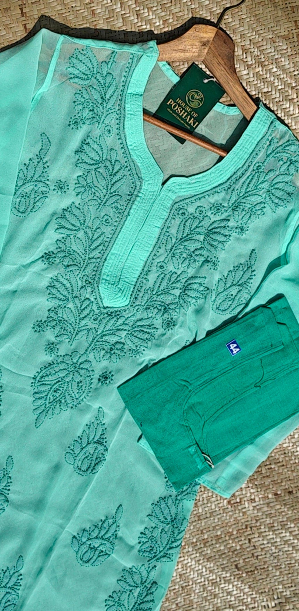 Elevate your style with our elegant Georgette Straight Kurti, featuring exquisite Chikankari work. Perfect for any occasion, this piece combines traditional craftsmanship with modern design for a timeless, graceful look.