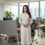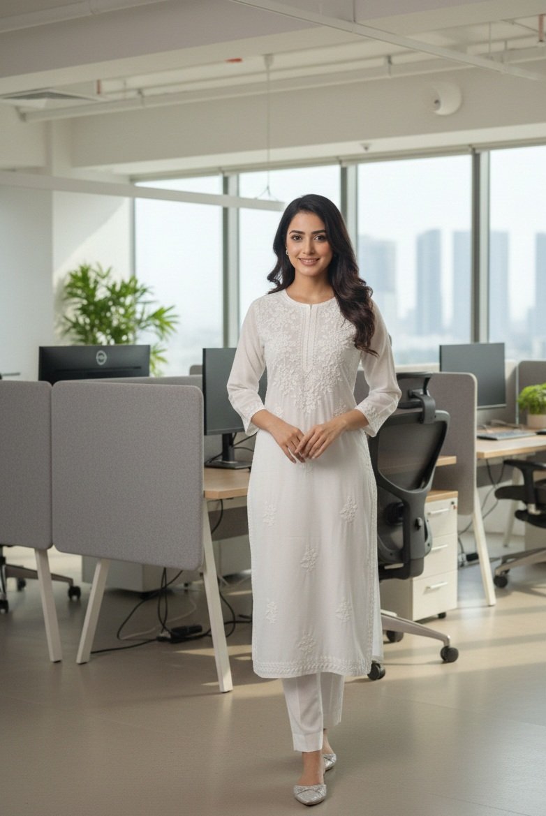 'Discover effortless elegance with our summer-friendly Modal straight kurti, adorned with exquisite ghaspatti handcrafted chikankari work. Perfect for warm weather, this kurti combines breathable comfort with intricate, artisanal detailing for a timeless look.