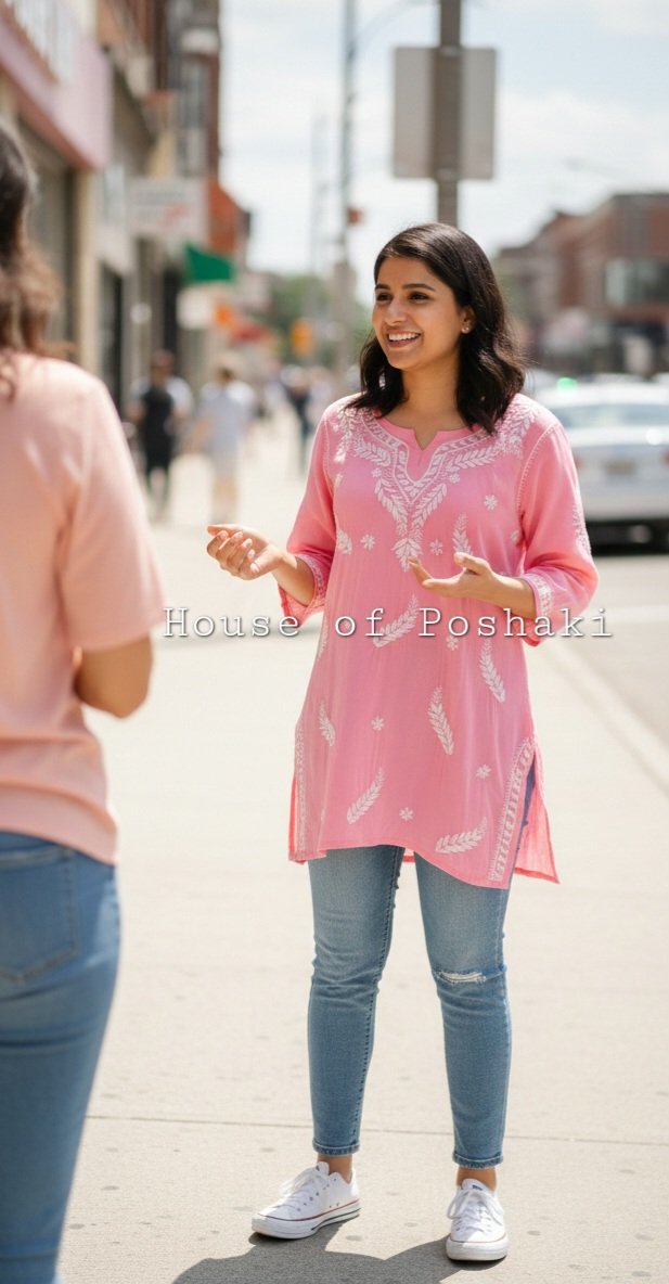 Embrace effortless elegance with this summer-friendly modal short kurti, featuring intricate handcrafted chikankari leaf designs. Perfect for daily wear, its breathable fabric and delicate embroidery offer both comfort and style. Ideal for adding a touch of sophistication to your everyday wardrobe.