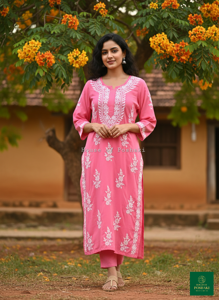 This straight-fit rayon kurti is designed for daily wear, offering a blend of comfort and elegance, perfect for summer. Handcrafted with intricate chikankari embroidery, it features breathable, lightweight fabric that keeps you cool while ensuring a stylish look. The kurti's simple yet elegant design makes it versatile for casual outings or work.