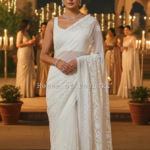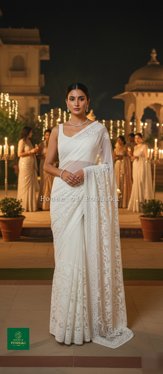 Sajni Georgette Half Jaal Saree – White