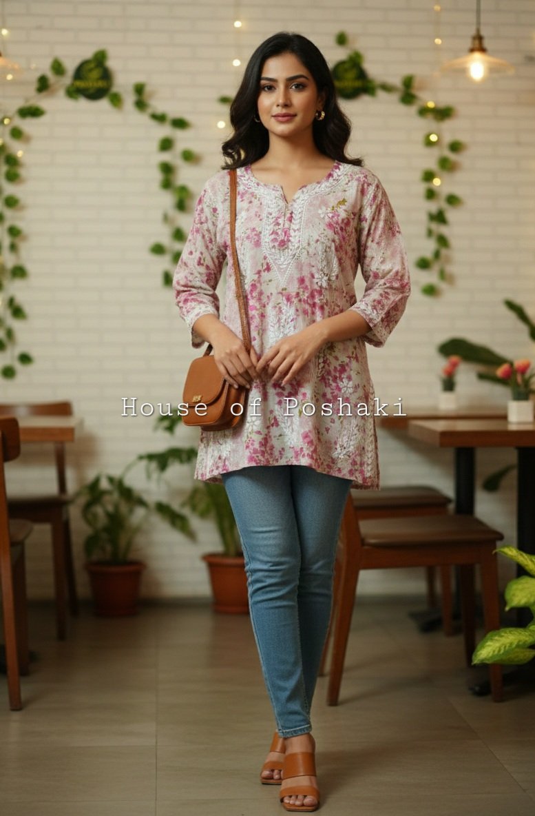 Introducing our short top Mulmul Chikankari is a delightful blend of elegance and comfort. Adorned with delicate floral motifs and intricate handmade Chikankari embroidery, this top evokes the charm of blooming springs and the tranquillity they bring. The soft fabric is gentle on your skin, ensuring all-day comfort. Slip into this beautifully embroidered Lucknowi Chikankari top, and let it brighten your day with its perky design and soothing feel.